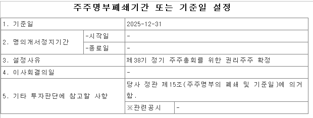 1. 기준일 : 2025년 12월 31일
